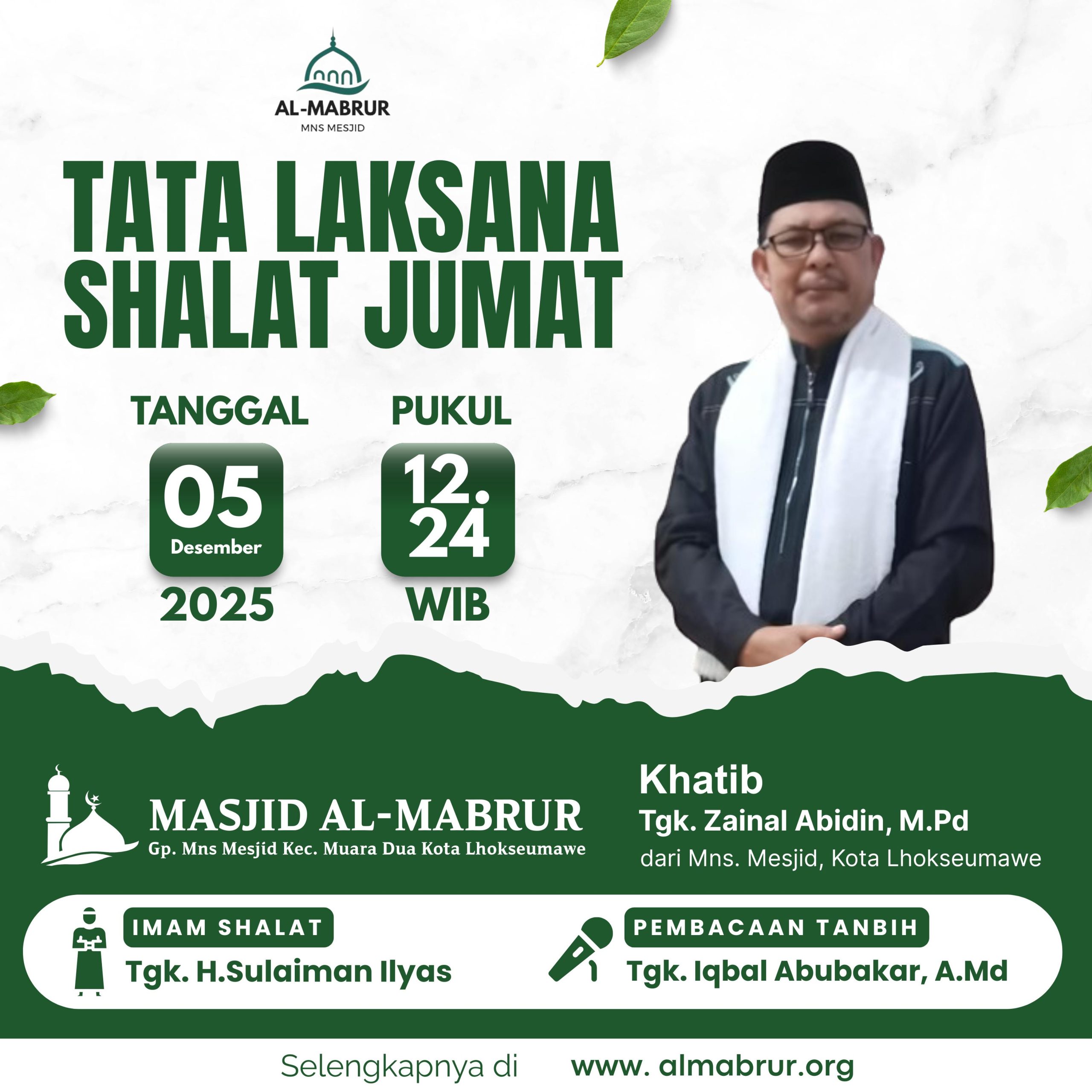 BKM Masjid Al-Mabrur Gampong Meunasah Mesjid Kecamatan Muara Dua Kota Lhokseumawe dengan ini menginformasikan Tata Laksana Shalat Jum’at sebagai berikut :
